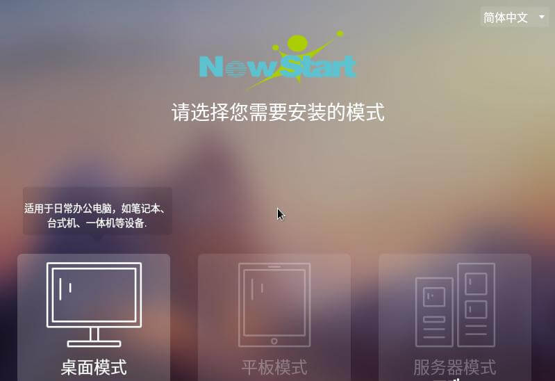 4、随后,进入到安装界面后,选择其中的“桌面模式”开始安装,如图所示;(其他模式后面会陆续开启)