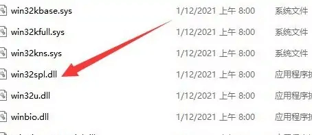 首先,依次点击“C:\Windows\System32”,把其中的“win32spl.dll”文件备份到其他的位置,如图所示;